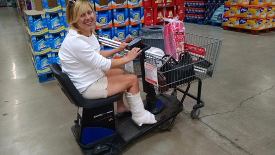 I also got to see some friends at a BBQ, and then on Sunday Michael came down to help me take out the garbage, put away the hoodies I had knocked over, and take me grocery shopping. I drove the motorized cart that usually sports morbidly obese humans who can’t walk around the store for a long period of time. It was demoralizing. But, we tried to make the best of the situation and we laughed about it while sharing a bloody-mary later.