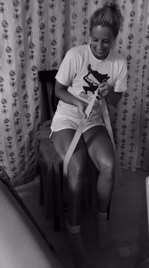 I went back to the gym to watch the last few events, not knowing exactly what was wrong with my knee, but in an immobilizer and on pain meds. We drove back to the gym that night and George had planned for Michael to pick up pizza and beer, in an attempt to make me feel better. It worked! That night Michael drove me home and helped me get situated. She stayed the night with me and then Arod and Brandon joined me on Sunday. It was not until Monday morning that I was alone and this was a really low point for me.